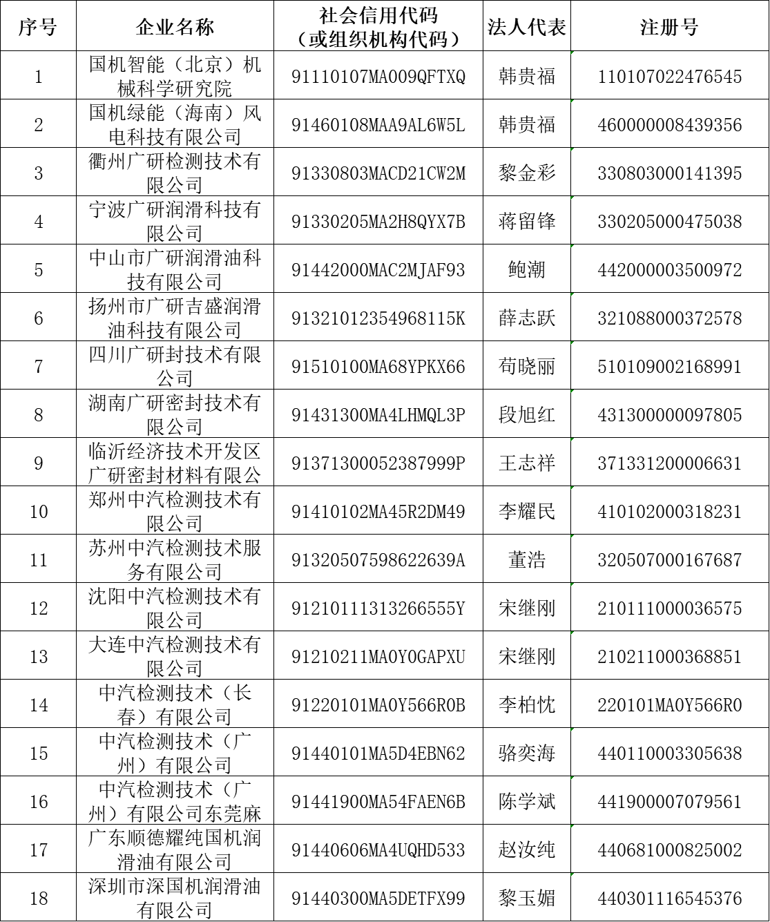 經我公司核實,國機智能(北京)機械科學研究院等下表18家公司及其下設(如有)各級控股及參股公司均與我公司及下屬企業(yè)(廣州機械科學研究院有限公司、廣研檢測(廣州)有限公司、廣州國機密封科技有限公司、中汽檢測技術有限公司、廣州國機潤滑科技有限公司等公司)無任何隸屬或股權關系,也不存在任何投資、合作、業(yè)務等關系,其一切行為均與我公司及下屬企業(yè)無關。